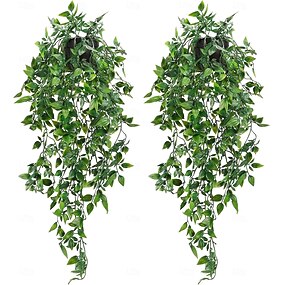 Confezione da 2 piante finte sospese, piante artificiali in vaso per interni ed esterni, decorazioni estetiche per ufficio, soggiorno, mensole, piante rampicanti finte sospese, piante artificiali