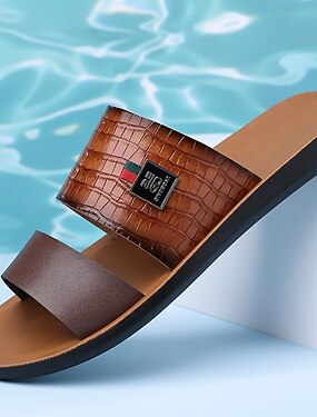Sandali da uomo marroni testurizzati, comodi sandali slip-on a punta aperta, stile casual e rilassato per uomo, ideali per le vacanze al mare, il tempo libero e l'uso quotidiano estivo.