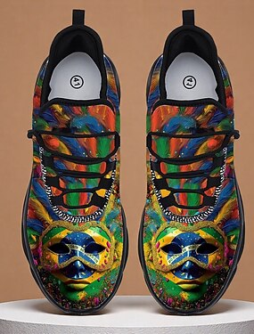 Sneaker da uomo con maschera piumata rossa e gialla per Mardi Gras – stile carnevalesco accattivante sneaker casual leggere per celebrazioni di carnevale