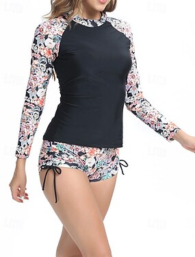 Per donna Top sottomuta Costume da bagno con stampa floreale Costume da bagno Tropicale Con zip Lato arricciato Ultra Leggero (UL) Protezione UV Elastico Manica Lunga Costume da Bagno Surf Snorkeling