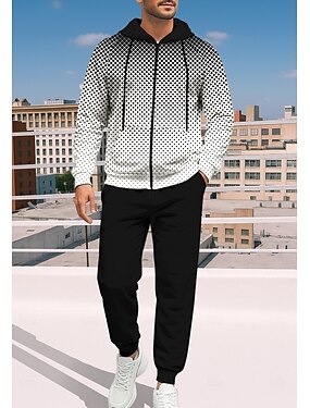 Per uomo Felpa con cappuccio Tuta da Ginnastica Felpa con cappuccio con zip Coulisse Tasche Geometrico Pantaloni Felpa con Cappuccio Felpa Autunno Inverno Autunno & Inverno Autunno / Inverno Nero con