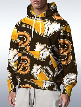 Felpa con cappuccio Stampa Casual Bavarese Manica a Vescovo Tasca Frontale Grafico per Per uomo Adulti Stampa 3D per Carnevale Birra Oktoberfest Vacanza Feste