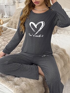 Per donna Pigiama Abbigliamento da Casa Set Pigiama Casual Cuore Elastico in vita Pantalone Vacanza Casa Streetwear Manica Lunga Girocollo Grigio scuro Autunno Inverno Vestibilità regolare