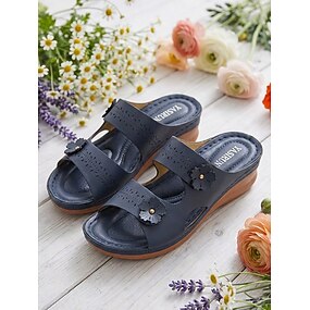 sandali comodi da donna con dettagli floreali verdi - scarpe leggere con zeppa bassa per camminare, feste in giardino, viaggi e uso quotidiano