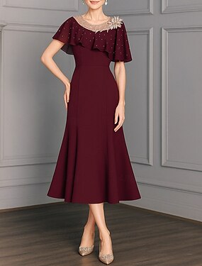 Linea ad A Lunghezza Tè Vestito da Festa Abito da Cocktail Abito da invitata a nozze Abito da cerimonia per signora Manica Corta Senza Spalle Elegante Vintage Festa Ferie Serata Formale Ricevimento