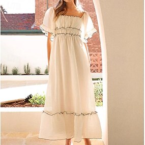 Retrò Vintage Medievale Rinascimento Midi Vestito Manica a Palloncino Ispirato alla Reggenza Tinta unica Costume Per donna Fantasia Matrimonio Vacanza Casual Quotidiano Adulti Primavera & Estate