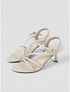 Sandali con tacco a spillo e lacci in pelle scamosciata beige da donna, con tacco alto e ritagli, per appuntamenti casual e uscite quotidiane
