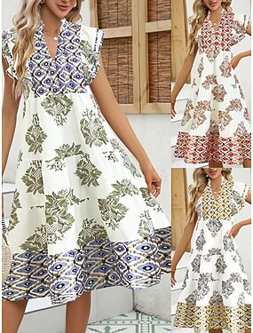 Per donna Abito Midi Abito Boho Abito Vintage Vestito Casual Abito Floreale Elegante Moda Moderno All'aperto Vacanza Uscire Vestibilità regolare Floreale Manica Corta Scollo a V Blu Giallo Rosso