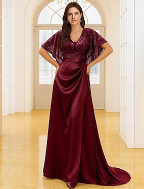 Abito da ospite di matrimonio a lunghezza terra A-Line Abiti formali Abito da sera Abito per la madre della sposa Maniche corte Collo a V Elegante Vintage Lusso con Paillettes