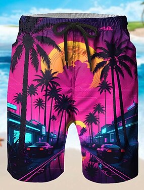 Per uomo Albero di Cocco Piante Tropicali Bagliore al neon Pantaloncini da tuta Shorts da Spiaggia Pantaloncini in spugna Misura del girovita medio Hawaiano Vacanza al Mare Coulisse Elastico in vita