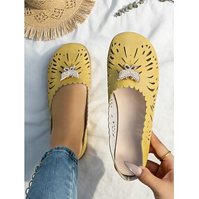 ballerine larghe gialle da donna con dettaglio di strass a farfalla, scarpe slip-on eleganti e comode per l'uso quotidiano, uscite primaverili/estive, passeggiate informali e attività all'aperto