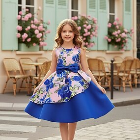 Abito da damigella d'onore bambina Ragazze Abito formale Abiti da sposa Feste Matrimonio Formale Adorabile Principessa Dolce Patchwork Floreale Senza Maniche Girocollo Blu Champagne Dai 4 anni in su