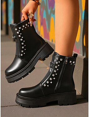 stivaletti neri con borchie da donna - stivali con plateau robusti in stile rocker e dettagli con borchie metalliche audaci, perfetti per look casual, street style e audaci