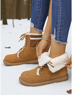 stivali da neve impermeabili con lacci e fodera in pelliccia calda da donna, stivaletti invernali antiscivolo per escursioni all'aperto, comode calzature isolanti per il freddo
