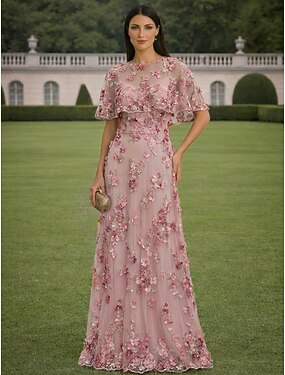 Linea ad A Abito Lunghezza al pavimento Vestito maxi Vestito da Festa Abito da Cocktail Abito da cerimonia per signora Manica Corta Scollo a Barca Elegante Vintage Lussuoso Formale Ospite di nozze