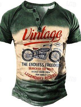 Per uomo Moto Vintage Maglietta Maglietta grafica Manica Corta Quotidiano Henley Stile da Strada Casuale Estate Primavera Verde Colletto Henley Maglietta Henley
