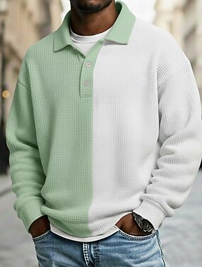 Per uomo Blocco di colori Magliette Polo a Nido d'Ape Manica Lunga Magliette polo Bavero Abbigliamento Sportivo Casual Scuola Athleisure Abbigliamento quotidiano Stampa 3D Primavera Autunno Inverno