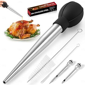 pera per tacchino in acciaio inossidabile per cucinare &cucina - siringa per liquidi caldi - iniettore per carne e cibo - misura grande con 2 aghi &2 spazzole per la pulizia: strumento essenziale per