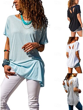 Per donna Maglietta Patchwork Senza schiena Semplice Elegante Moda Casual Manica Corta Girocollo Top lunghi Quotidiano Uscire Weekend Nero Bianco Grigio Azzurro Estate Primavera