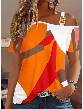 Per donna Maglietta Stampato Blocco di colori Casual Manica Corta Girocollo Top lunghi Quotidiano Bianco Vino Grigio Estate