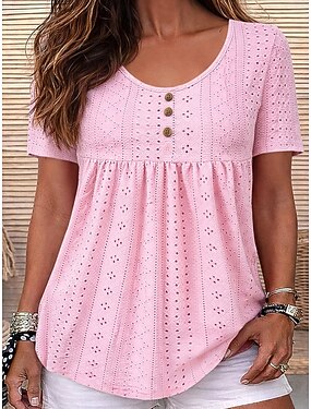 Per donna Maglietta Traforato Semplice Moda Elegante Classico Manica Corta Girocollo Top Regolari Quotidiano Uscire Weekend Blu Nero Bianco Rosa Viola Estate Primavera