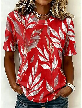 Per donna Mini Abito Vestito T-Shirt Abito a Tubino Vacanza Casual All'aperto Uscire Vestibilità comoda Floreale Foglia Manica Corta Girocollo blu navy Bianco Rosso Verde Estate Primavera