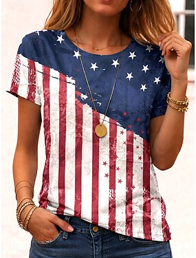 Giorno dell'Indipendenza Americana Per donna Maglietta Stampato Grafico Bandiera Elegante Classico Casual Manica Corta Girocollo Top Regolari Quotidiano Blu Bianco Rosso Estate Primavera