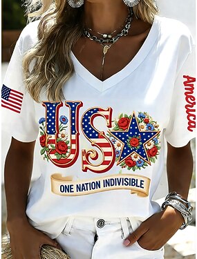 Giorno dell'Indipendenza Americana Per donna Maglietta Stampato Grafico Bandiera Vintage Elegante Classico Manica Corta Scollo a V Top corti Quotidiano Bianco Estate Primavera