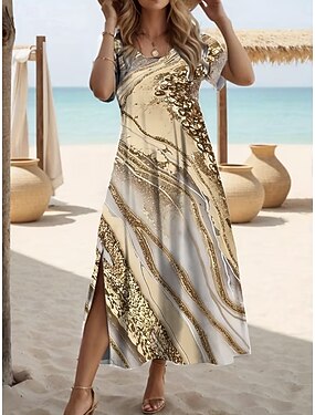 Per donna Abito Midi Vestito T-Shirt Abito a trapezio Abito Estivo Vacanza Casual Spiaggia Uscire Vestibilità regolare Grafico Paesaggio Astratto Manica Corta Girocollo Blu Champagne Estate Primavera