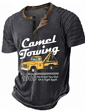 Per uomo Cartoni animati Vintage Maglietta Maglia Henley Manica Corta Designer Retrò Vintage Henley Casuale Quotidiano Streetwear Estate Primavera Blu Nero Verde Henley Maglietta Henley