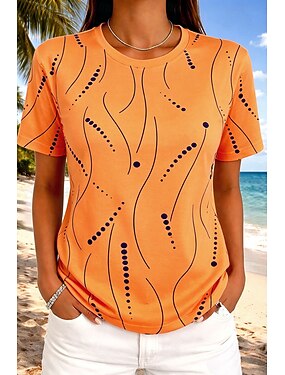 Per donna Maglietta Cerniera Grafico Geometrico A righe Elegante Classico Casual Manica Corta Girocollo Top Regolari Quotidiano Sportivo Uscire Blu Rosa Viola Grigio Estate Primavera