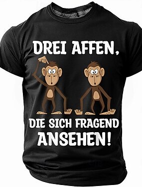 Maglietta grafica umoristica da uomo 'Tre scimmie confuse' Slogan tedesco Maglietta divertente a manica corta