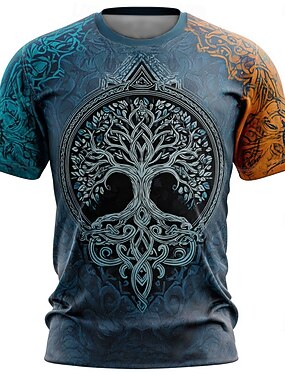 Per uomo 3D Celti Albero della vita Maglietta Manica Corta maglietta Stampa 3D Girocollo Camicia Vichingo Designer Casuale Feste Streetwear Blu Giallo Marrone Estate Primavera Abbigliamento S M L XL