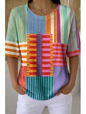 Per donna Top a maglia con texture Maglietta Blocco di colore Grafico Geometrico Geometria Elegante Classico Manica Corta Girocollo Henley Top lunghi Quotidiano Sportivo Blu Rosso Viola Arancione