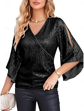 Per donna Blusa Paillettes Tinta unica Elegante Moderno Manica 3/4 Scollo a V Top Regolari Quotidiano Nero Fucsia Primavera Autunno Inverno