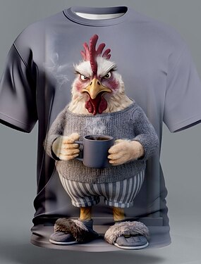 Per uomo Animale Gallo Divertente Maglietta Manica Corta maglietta Stampa 3D Girocollo Camicia Esagerato Designer Feste Ferie Grigio scuro Grigio Estate Primavera Abbigliamento S M L XL XXL XXXL