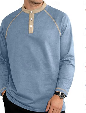 Per uomo Motivo patchwork finto Maglietta Maglia Henley Manica Lunga Vintage Designer Elegante Casuale Quotidiano All'aperto Primavera & Estate Tutte le stagioni Blu Henley Maglietta Henley