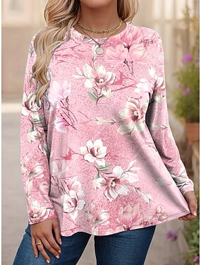 Per donna Taglia grossa Top Maglietta Floreale Grafico Stampato Manica Lunga Girocollo Casual Quotidiano Poliestere Autunno Inverno Blu Rosa