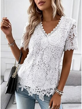 Per donna Maglietta Cerniera Floreale Grafico Piante Elegante Casual Manica Corta Girocollo Top Regolari Quotidiano Sportivo Weekend Blu Giallo Rosa Viola Verde Estate Primavera