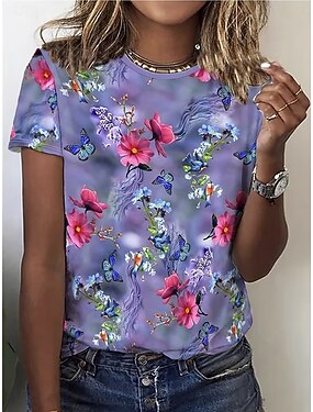 Per donna Maglietta Stampato Floreale Grafico Piante Elegante Classico Casual Manica Corta Girocollo Top lunghi Quotidiano Giallo Viola Verde Estate Primavera