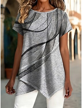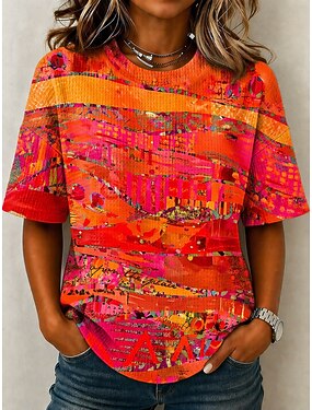 Per donna Maglietta Stampato Ombre Grafico Astratto Vintage Elegante Classico Manica Corta Girocollo Top Regolari Casuale Quotidiano Weekend Blu Giallo Viola Verde Estate Primavera