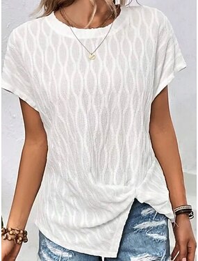 Per donna Top traforato Maglietta Spacco laterale Polsino arrotolato Elegante Manica Corta Manica a pipistrello Scollo a V Top lunghi Casuale Abbigliamento da vacanza Bianco Estate Primavera