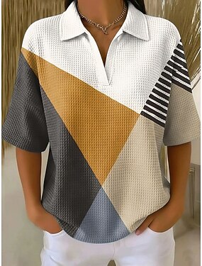 Per donna Maglietta Waffle Top a maglia con texture Grafico Geometrico Elegante Vintage Mezza Manica Colletto Polo Top Regolari Casuale Quotidiano Blu Giallo Viola Verde Estate Primavera