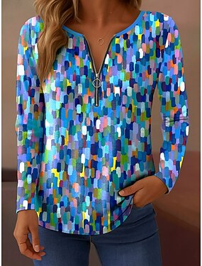 Maglietta da Donna a Maniche Lunghe Mezza Zip a Maniche Lunghe Casual Ombre Grafica Astratta Elegante Vintage Stile a V Collo Regolare Superiori Quotidiani Rosa Blu Arancione Verde Primavera Autunno