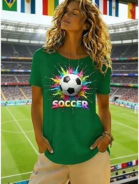 Per donna Maglietta Stampato Grafico Calcio Elegante Classico Casual Manica Corta Girocollo Top Regolari Quotidiano Sportivo Uscire Nero Bianco Verde Grigio Estate Primavera