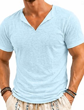 Per uomo Maglietta Maglietta in lino Manica Corta Maniche Corte Scollo a V Estate Semplice Moda Designer Essenziale Morbido Puro Casuale Vacanza Streetwear Blu Bianco Nero Maglietta Top per Uomo