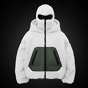 Per uomo Felpa con cappuccio Felpa con cappuccio a zip intera Felpa con cappuccio e zip Felpa con cappuccio in pile Sherpa Nero Bianco Grigio scuro Con Cappuccio Blocco di colori Con zip Patchwork