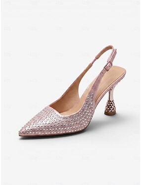 Décolleté da donna rosa cipria con cinturino posteriore – scarpe eleganti in velluto a punta con spilla di strass per cocktail party &eventi serali