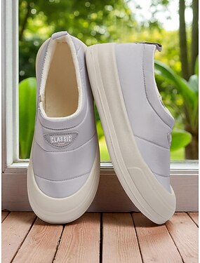 scarpe da ginnastica bianche da donna larghe e slip-on con fodera in peluche – calde scarpe da passeggio invernali da indossare tutti i giorni
