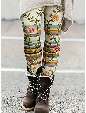 Per donna Leggings Leggings comodi Vacanza Vintage Casual Lunghezza intera Vita Alta Floreale Grafico A righe Stampa Comodità Confortevole Alta elasticità Casuale Quotidiano Vacanza Verde Primavera